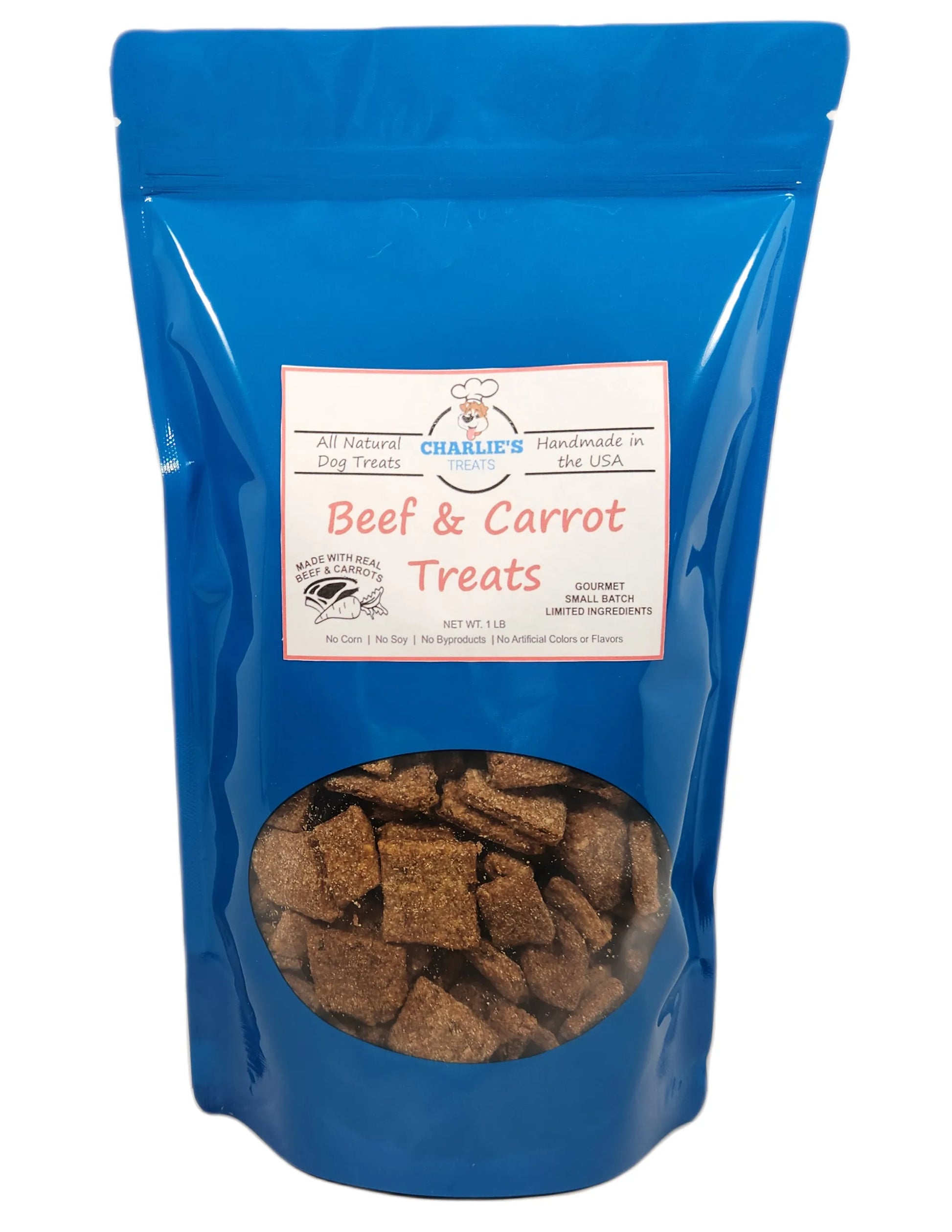 Our Beef & Carrot Treats are made with real beef and fresh shredded carrot. These treats are low-fat, perfect for small or overweight dogs and frequent treating like training.