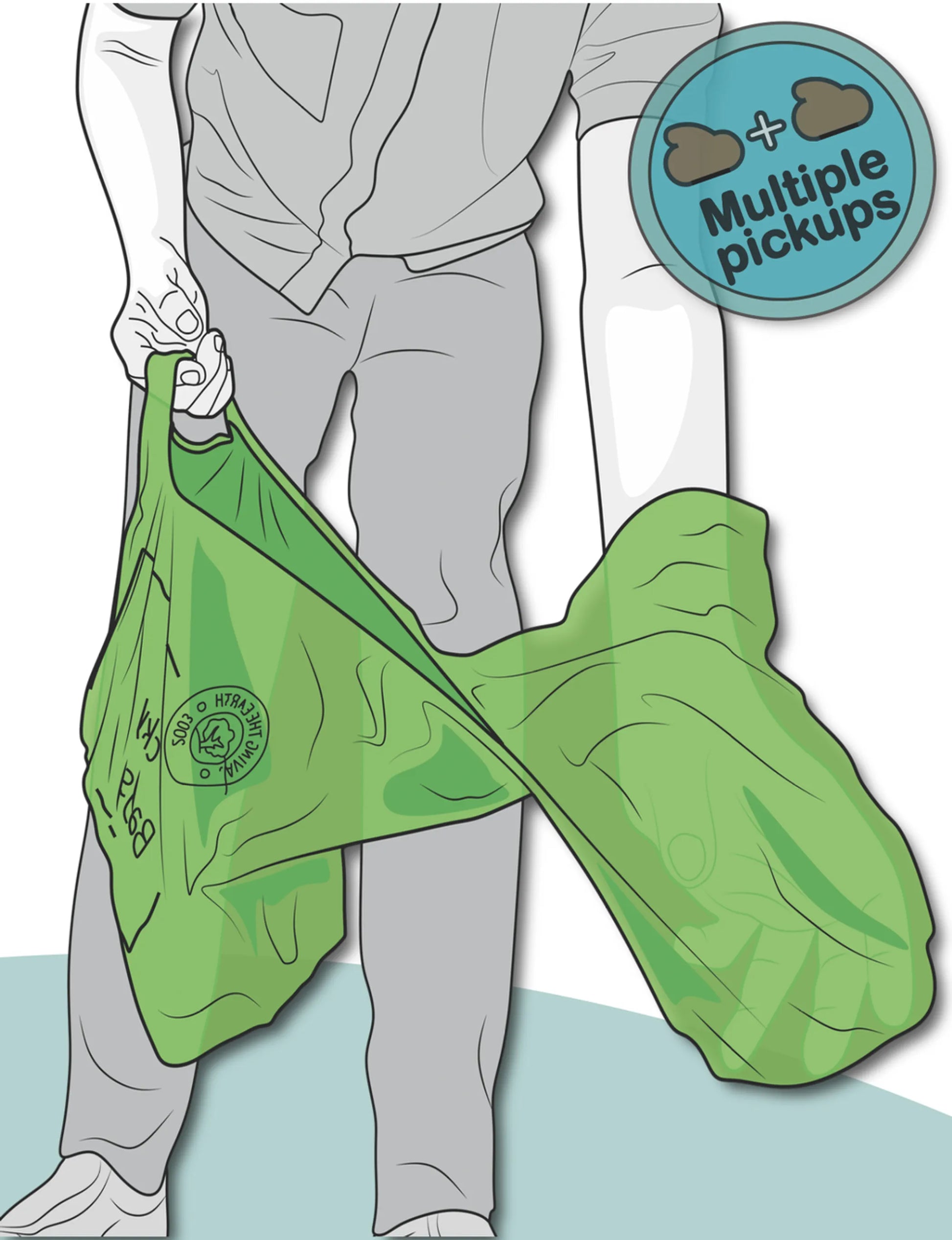 These Backyard Bags are the best alternative to pooper scoopers, making waste clean up easier than ever before! Each Backyard Bag has an easily accessible slot for your arm to slide through, which allows you to use your hand to clean up without the mess.