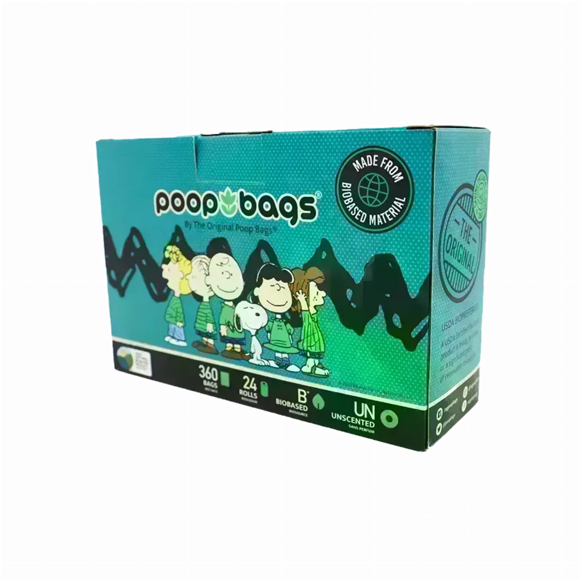 Clean up after your furry friend with our Peanuts waste bags from The Original Poop Bags . These exclusively licensed waste bags are made out of USDA Certified Biobased materials with a minimum of 38% plant material. These poop bags are large enough to allow pet parents to tie and seal the top of the bag. They are also thick and leak-proof to stand up to whatever your paw-tner leaves behind. Make picking up a bit more fun with Snoopy and The Gang!