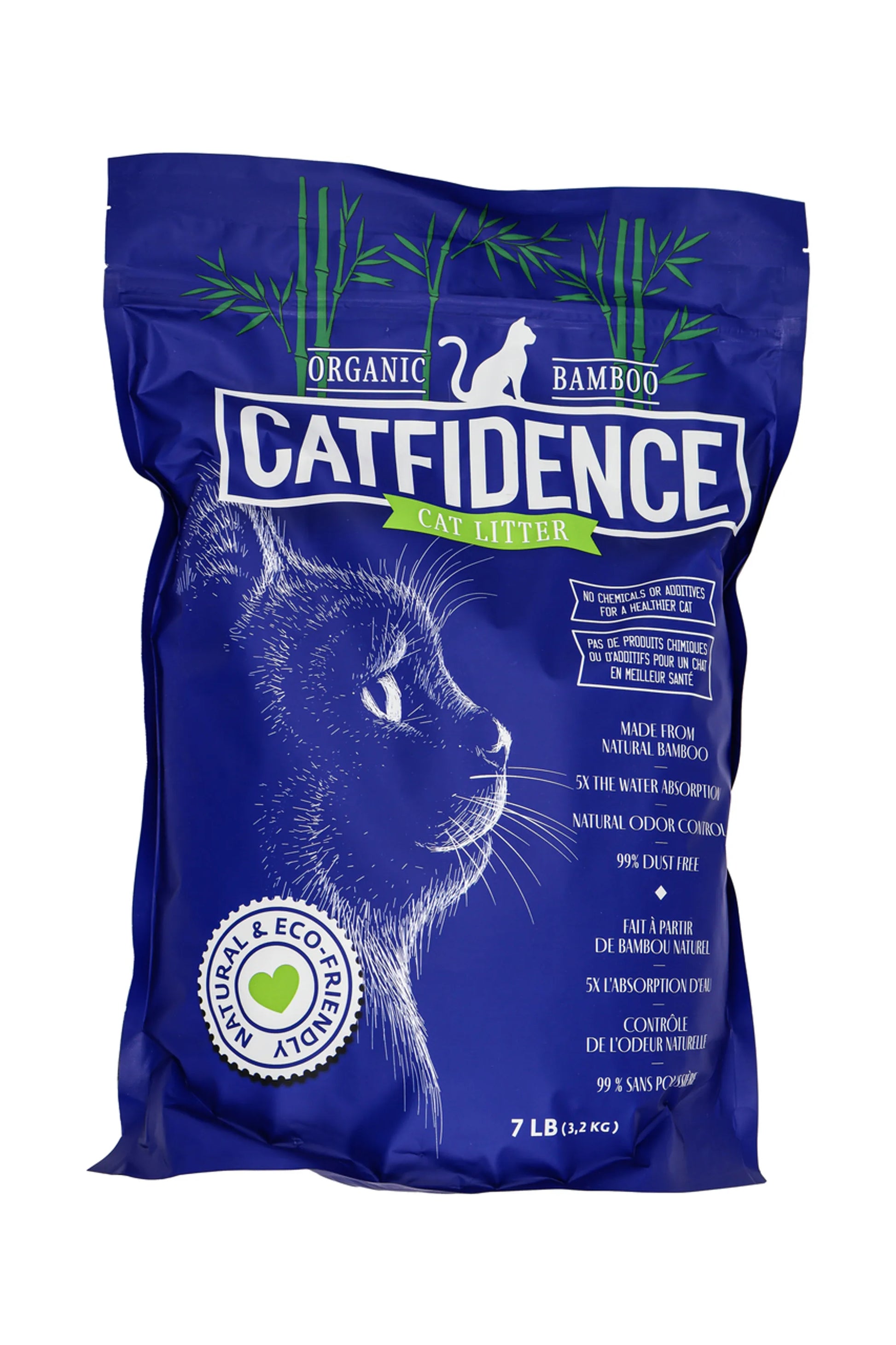 Confidence is 100% organic cat litter made from sustainable bamboo and certified 98% USDA Bio-Preferred. It has been tested to be 3 to 5 times more absorbent than clay litters. It has natural odor control and absorbency from the cellular structure of bamboo. There are no chemicals or additives for a safe environment for the pet, people, and the planet. One 7 lb bag is equivalent to 40 lbs of clay litter and lasts an entire month. It is lighter and is designed to last longer than traditional litter.