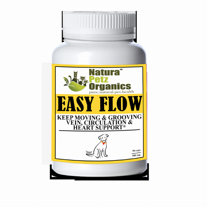 EASY FLOW contains nutraceutical antioxidants, adaptogens, bioflavonoids, oligomeric procyanidins (OPCs), triterpenoid saponins and amines content, which may be used holistically to help support healthy circulation to all parts of the body; for heart health; as a heart and immune tonic; containing plant chemicals which may work to help reduce the risk of heart disease; may help protect cell walls throughout the body; may help encourage proper valve function; may help support the strength of blood vessels, veins, arteries and may help promote muscle cell healing and regeneration, which is critical for a dog or cat with heart dysfunction. (* As recommended by holistic veterinarians for use under a traditional medical system)