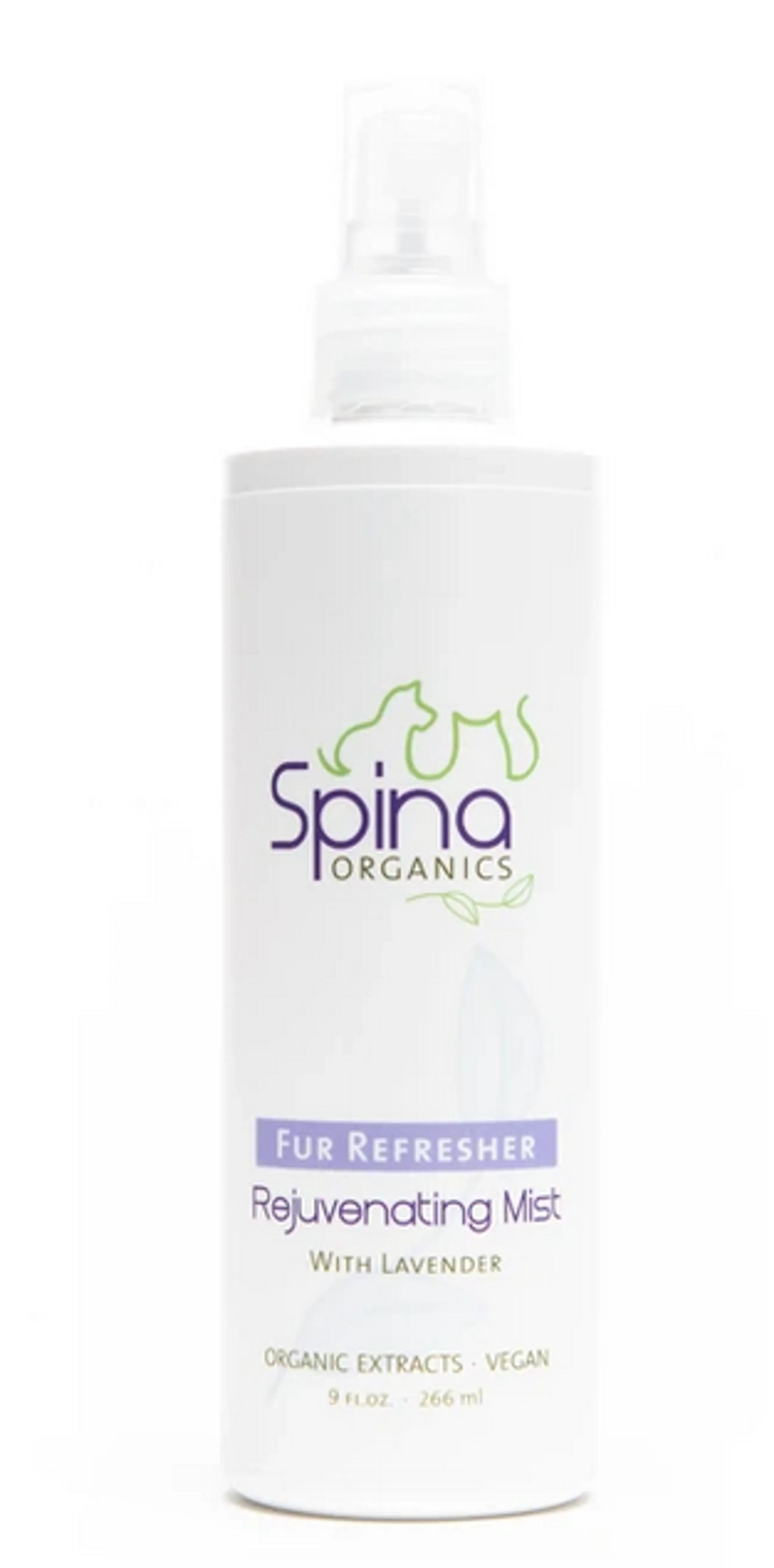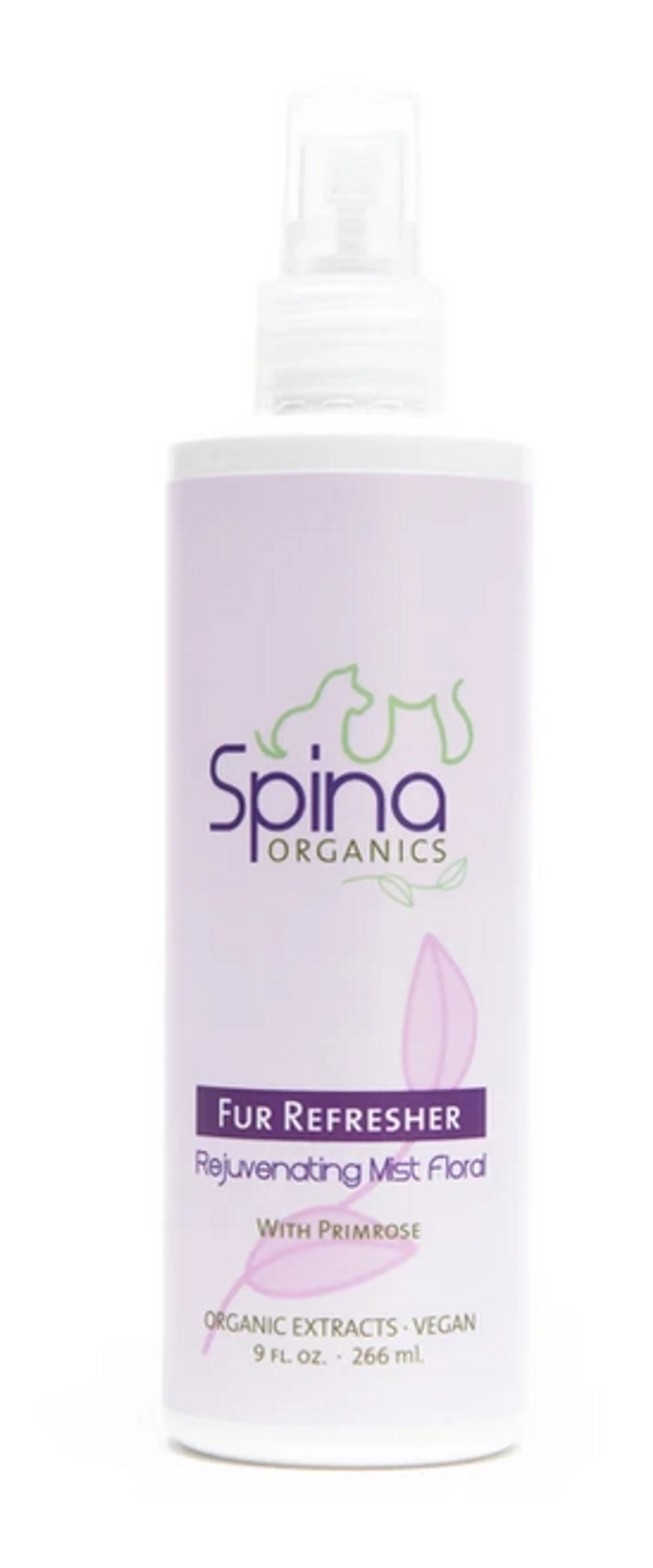 This Fur Refresher - Rejuvenating Mist Floral is made with all-natural botanical extracts and essential oils to help protect and rejuvenate your dog's fur and skin. Featuring a signature floral scent, it is great for use in-between baths to neutralize odors and leave your dog's coat shiny, smooth, and soft without oily residues. Also can be used on bedding, blankets, or wherever needs a freshen up!