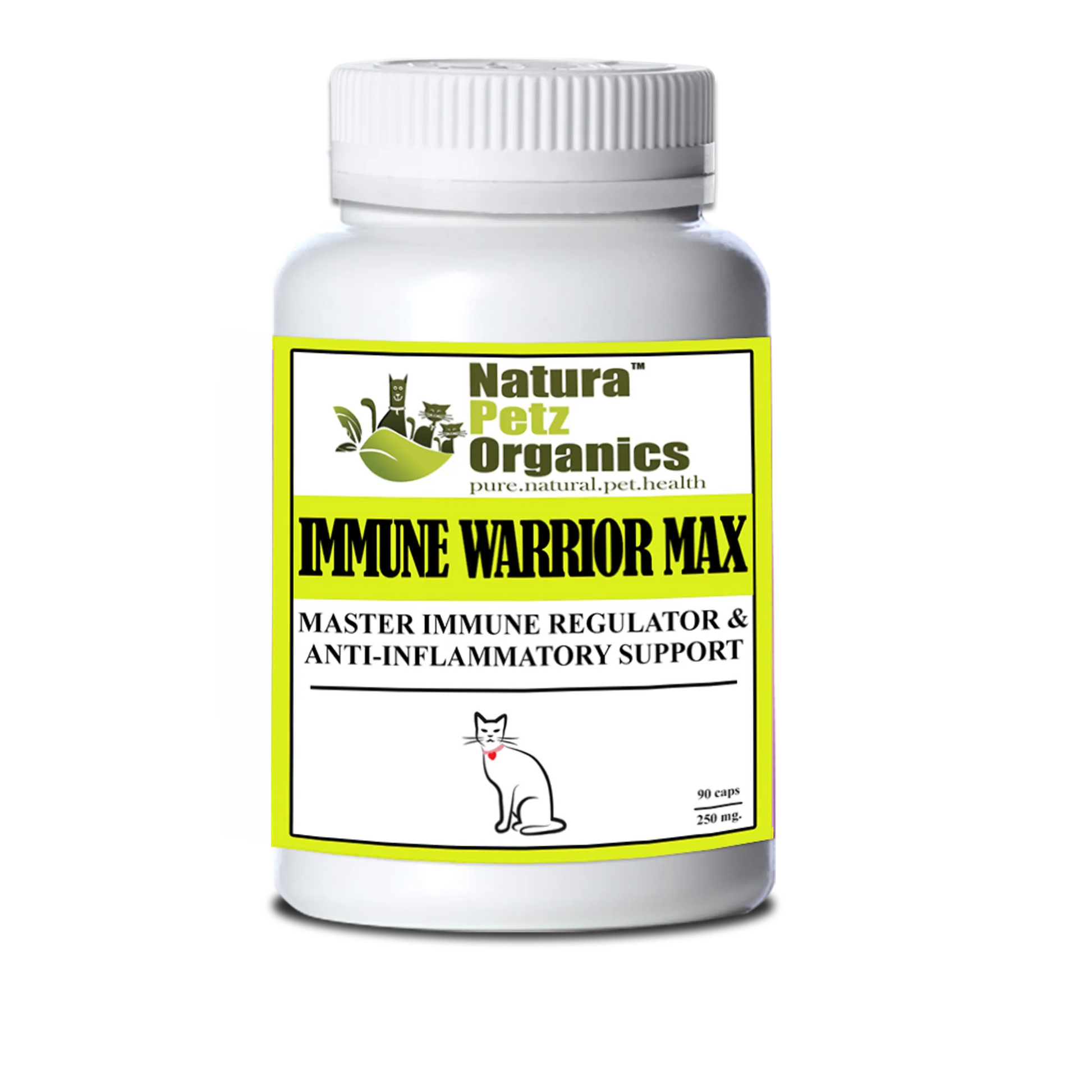 The potential anti-inflammatory adaptogen actions of the plants contained in IMMUNE WARRIOR MAXhas been described as containing a cytokine switching mechanism that may help increase immune cell actions tasked with identifying foreign invaders like bacteria while also helping to suppress other anti-inflammatory immune cells which can trigger inflammation in an immune compromised animal. Often in immune compromised pets, the Immune System has become overwhelmed and cannot detect bad? invaders from good? and in turn, attacks its own tissue, cells and organs, leading to destructive wide spread inflammation throughout the body, often creating one condition that leads to disease