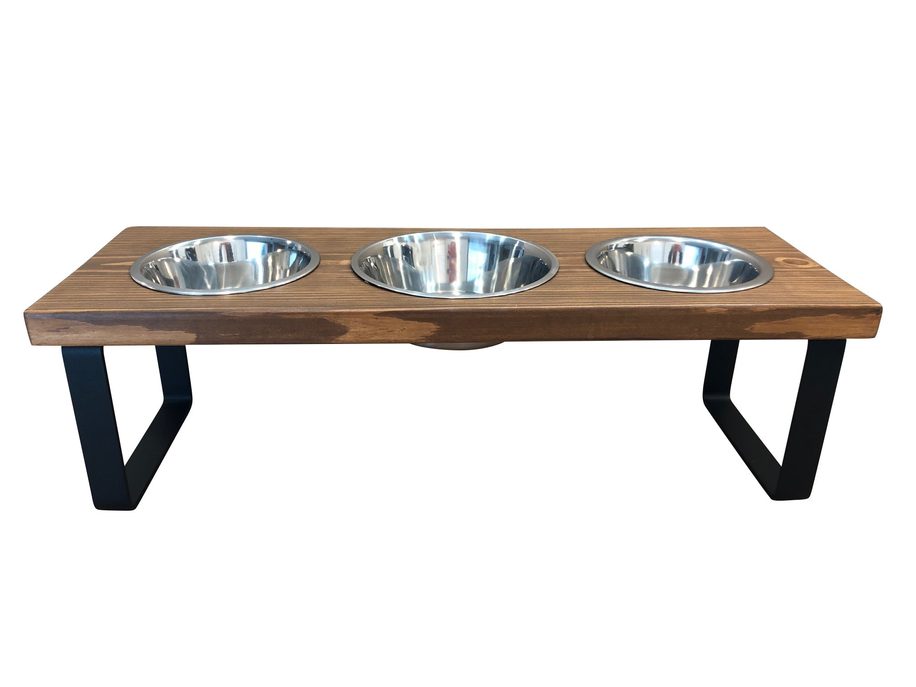 Handmade Elevated stand in one size to fit medium size dogs. Available in four different stain options. The added weight of this pet's diner feeder gives it stability and prevents spills. These Raised dog feeders are made to order and will require assembly upon arrival. Our dog feeding station design is fit for 2 dogs