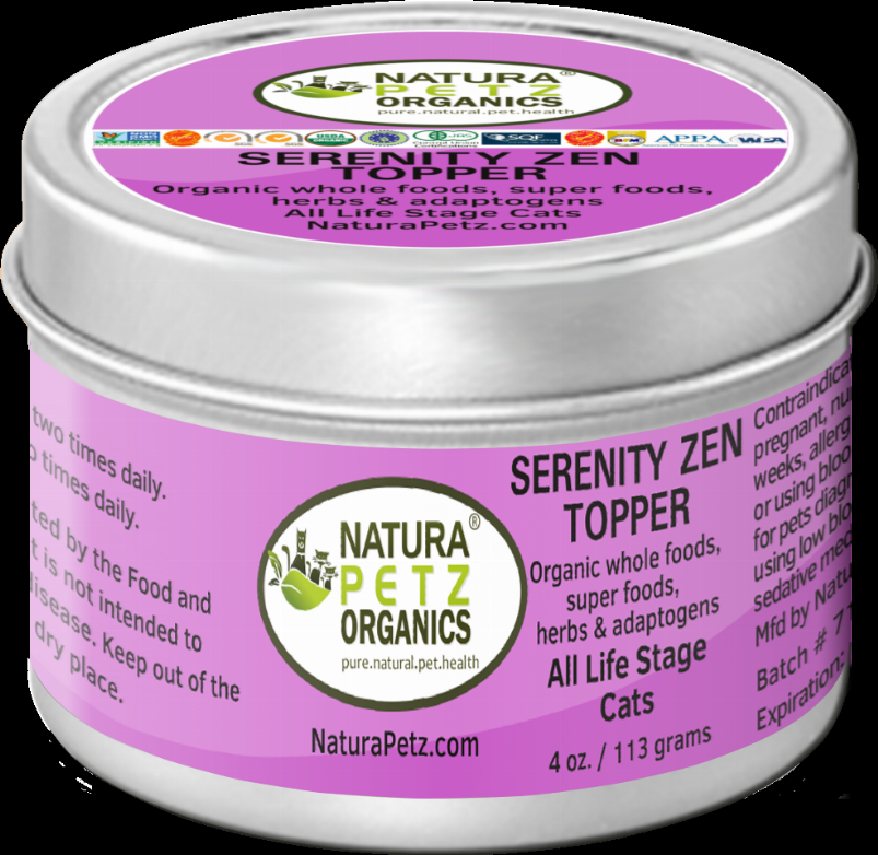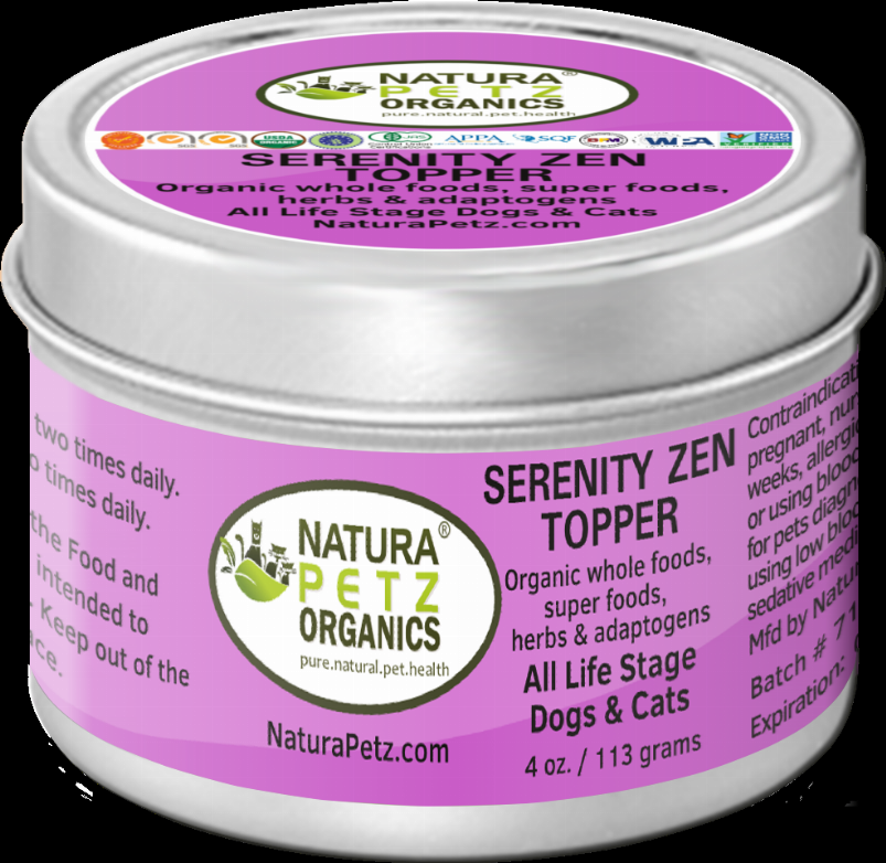 SERENITY ZEN DOG and CAT MEAL TOPPER* isused holistically to relax and calm an anxious, stressed dog or cat; to help function as an alternative to benzodiazepine drugs due toits tonic calming, mildly sedative and nervine plant actions which may help relieve stress triggers and may help relax the Central Nervous, autonomic, sympathetic ("fight or flight"), somatic and parasympathetic ("rest and digest") nervous systems, as well as to help relax and soothe the adrenal, cardiovascular, digestive, excretory and respiratory systems, helping to nutritionally and phytochemically support balance throughout all body systems when your pet is anxious or stressed, due to avariety of healthy, natural plant chemicals, including valepotriates, antioxidants, adaptogens, alkaloids, lignans, volatile oils, flavonoids, amino and fatty acids, glycosides, choline, quercetin, glucose andenzymes.