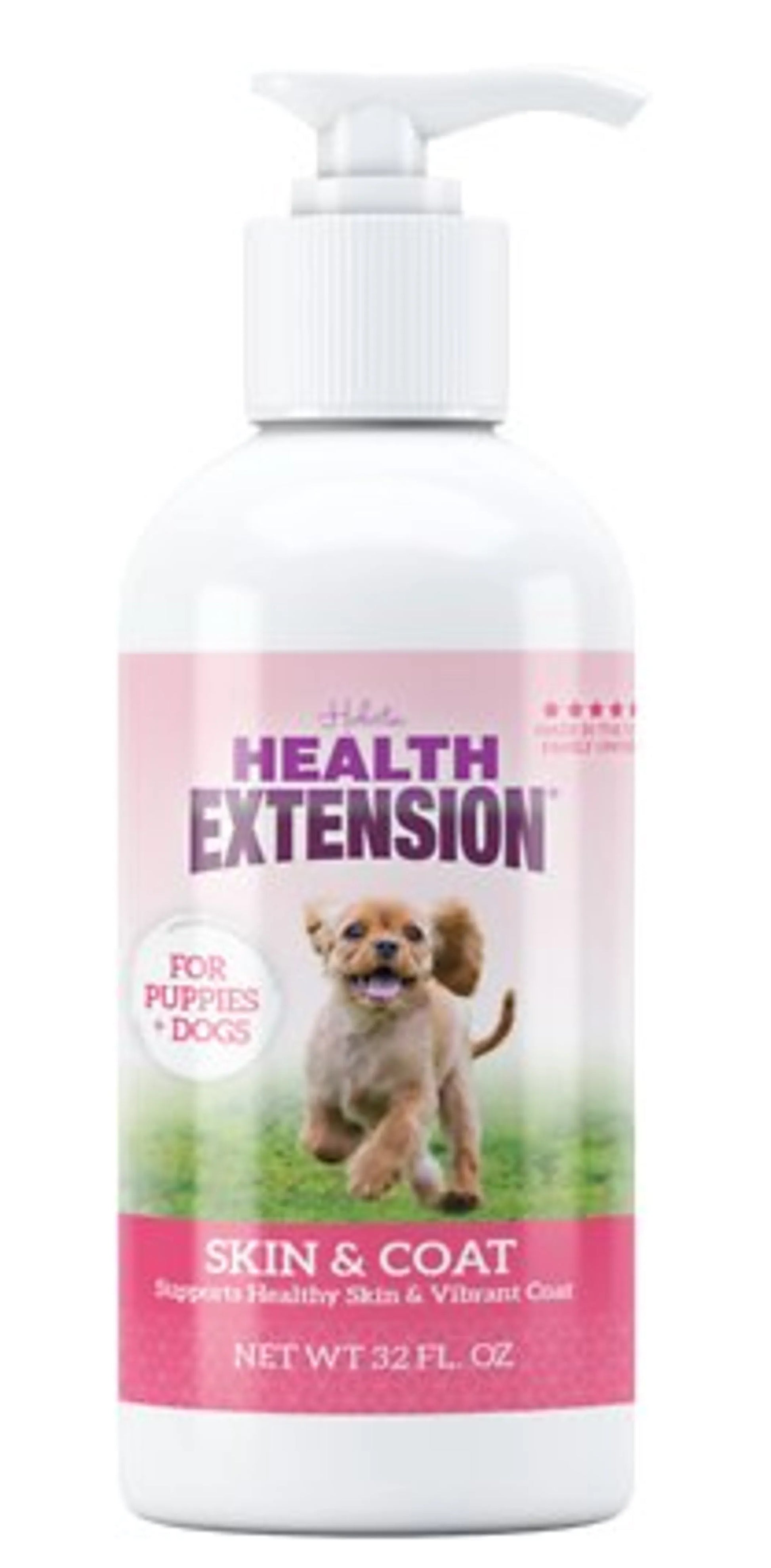 Made from 100% natural ingredients, this liquid dietary supplement is custom blended to help promote the healthiest skin and coat! Health Extension Skin & Coat is rich in Omega 3 and 6 fatty acids, which are essential for supporting supple skin and a glossy coat. A pump or two over food every day helps prevent dryness and itching while reducing shedding by up to 70%.